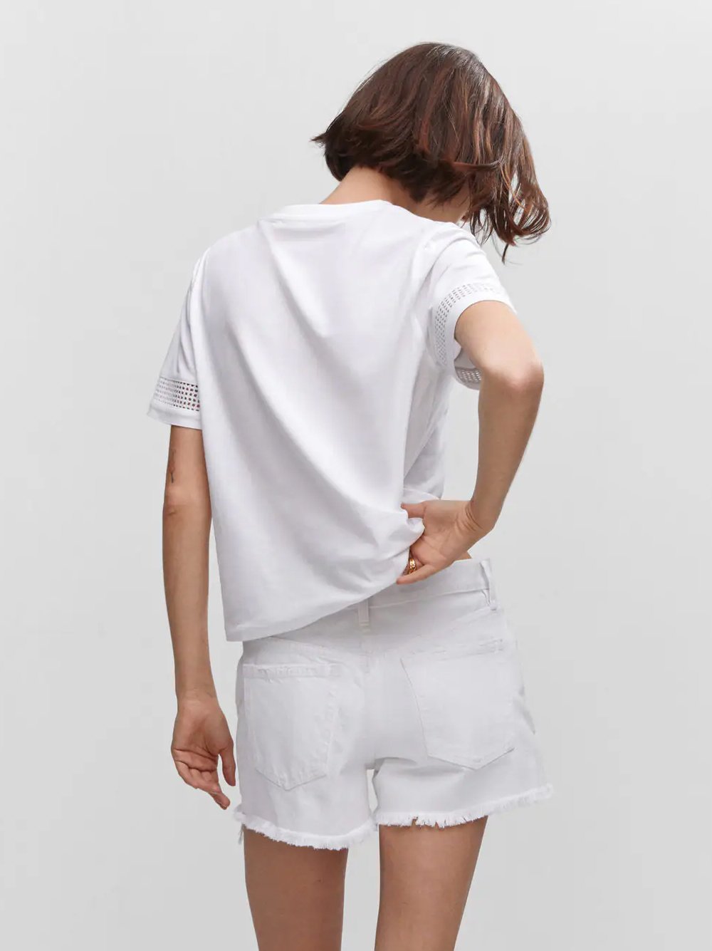 Women Solid Polo Neck Cotton Blend White T-Shirt